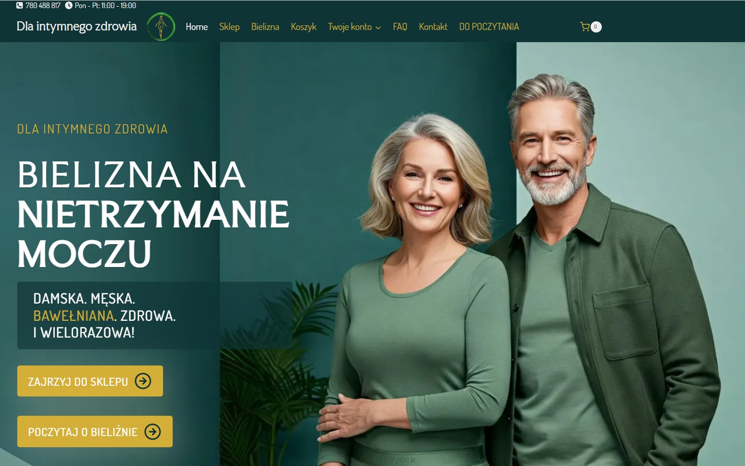 Alltags, betreiben wir zwei Online-Shops und zwei stationäre Läden. Der erste Online-Shop verkauft Geruchsneutralisierende Unterwäsche und heißt Wiatrodyskretni – es bedeutet auch DiskreteWinde, nur auf Polnisch. Der zweite Online-Shop verkauft spezialisierte, ökologische und wiederverwendbare Baumwollunterwäsche für Leute, die unter Harninkontinenz leiden. Die beiden stationären Läden sind auf den Verkauf gesunder Lebensmittel spezialisiert. Diese Geschäfte betreiben wir am längsten: schon seit mehr als 10 Jahren.